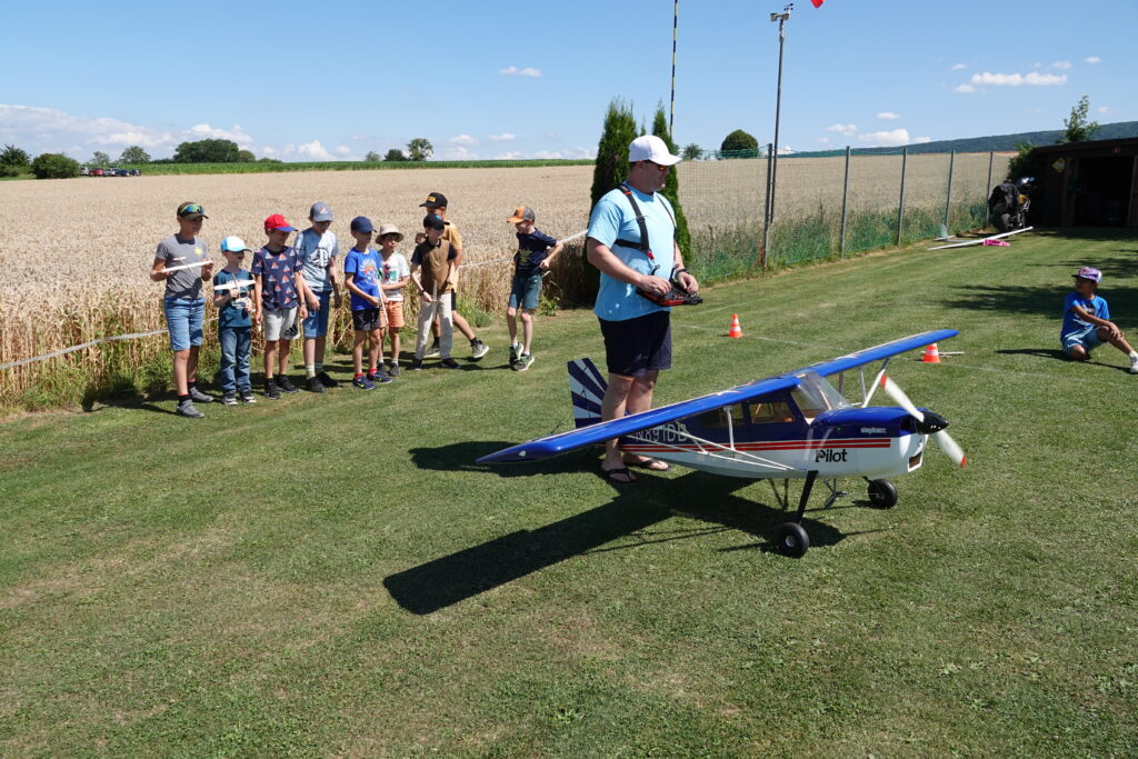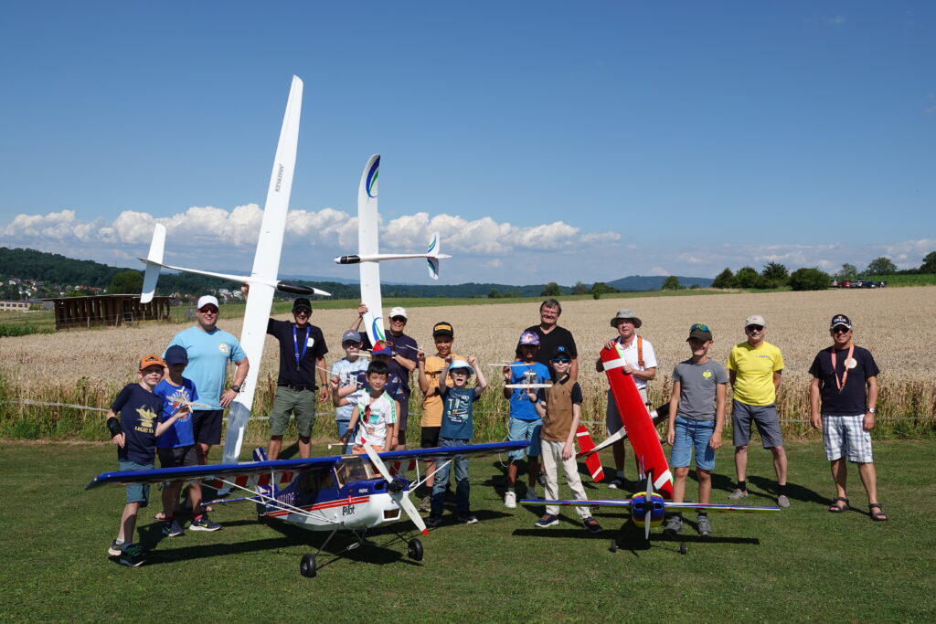 Unsere Ausschreibung «Einführung in den Modellflug» im Rahmen des Leimentaler Ferienpasses war wenige Tage nach Veröffentlichung ausgebucht. So durften wir an zwei Nachmittagen bei schönstem Sommerwetter je 10 Kinder im Alter zwischen 10 und 16 Jahren auf unser Flugfeld einladen.